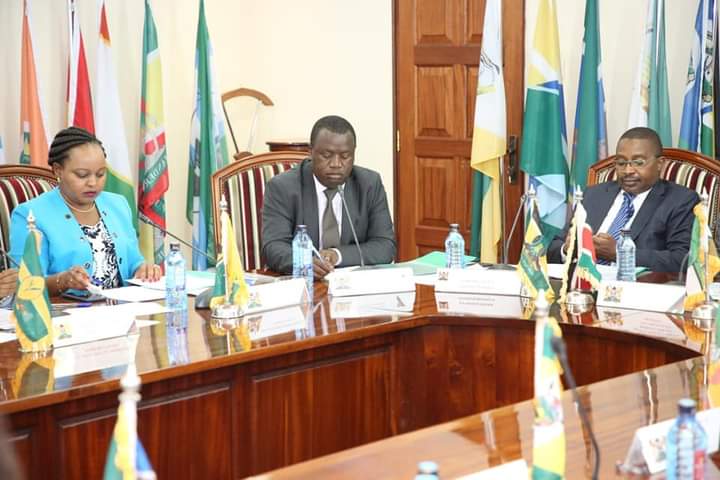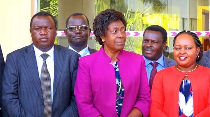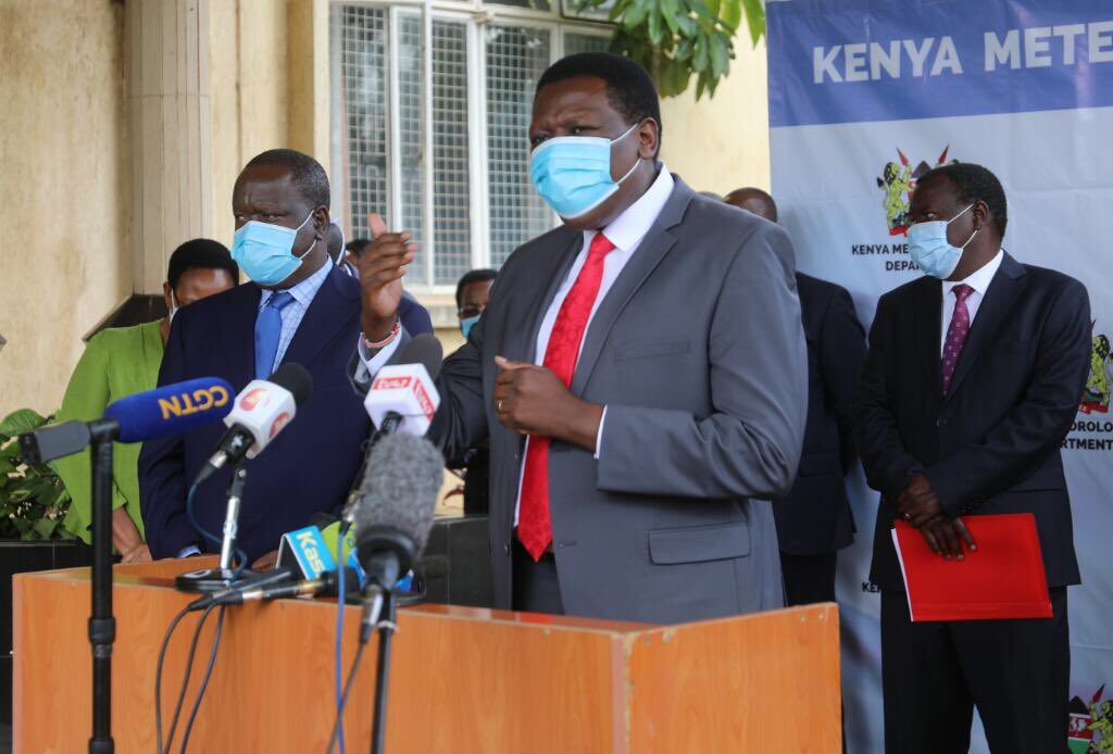 PS CHARLES SUNKULI with CSs Matiangi, Keter, Wamalwa, Cicily KARIUKI, TOBIKO and Joe Mucheru at the press conference to update the country on the flood situation .The level of alert has been raised following increased rainfall across the country